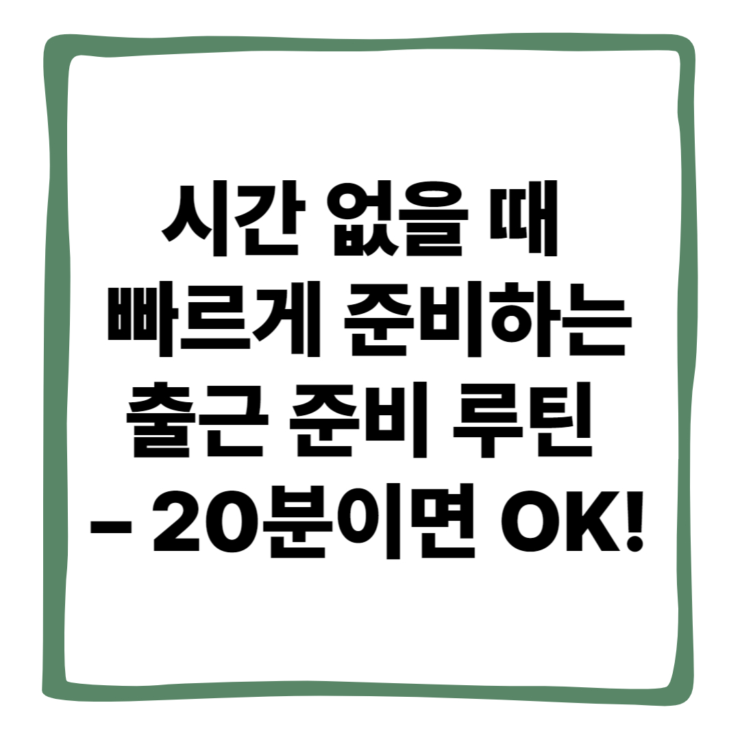 출근 준비는 속도보다 패턴화와 사전 준비가 핵심입니다. 단 20분, 작은 습관만 바꿔도 매일 아침이 덜 급하고 더 여유로워질 수 있습니다. 내일 아침, 한 가지 루틴부터 실천해보세요. 퇴근할 때의 기분도 달라질 거예요.