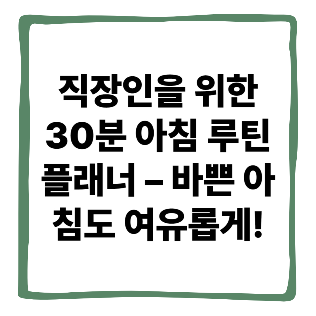 출근 시간은 다가오고, 여유는 없고, 정신은 없고... 바쁜 직장인이라면 누구나 겪는 아침의 현실입니다. 그러나 단 30분의 루틴만으로도 하루가 달라질 수 있습니다. 오늘은 출근 전 30분, 직장인을 위한 현실적인 아침 루틴 플래너를 소개합니다. 시간은 짧지만, 밀도 있는 하루를 위한 전략적인 루틴을 만들어보세요.