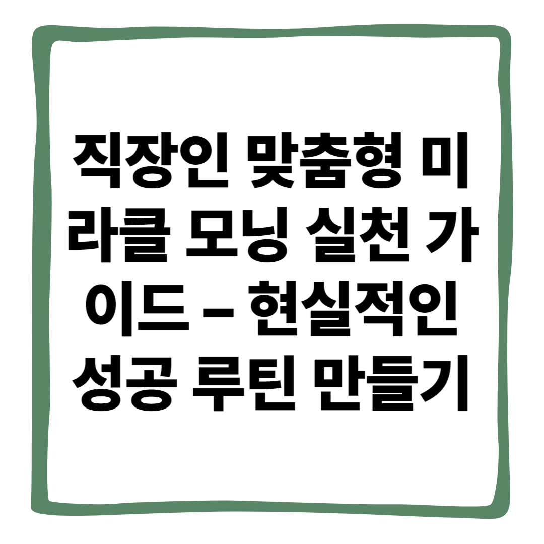미라클 모닝은 ‘새벽 5시 기상’이 아닙니다. 하루의 시작을 주도하는 습관입니다. 직장인이라면 아침 시간을 효율적으로 설계하고, 나만의 리듬으로 소화하는 것이 핵심입니다. 내일 아침, 당신만의 미라클 모닝을 시작해보세요. 작지만 놀라운 변화가 기다리고 있을지도 모릅니다.